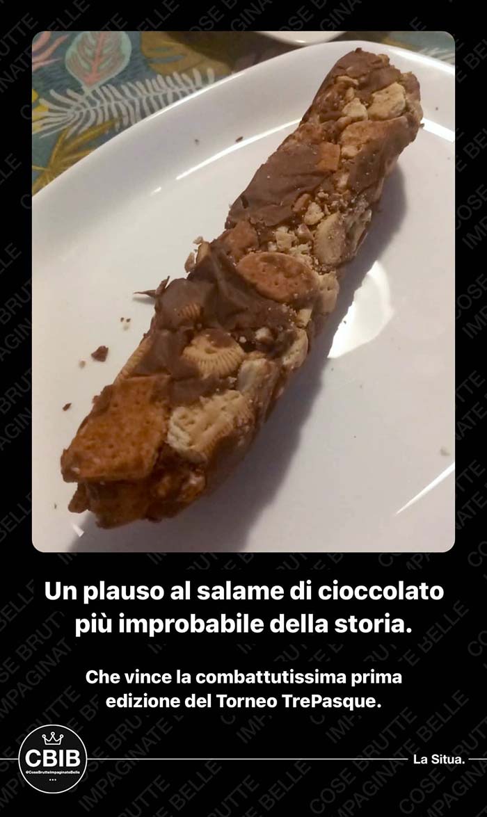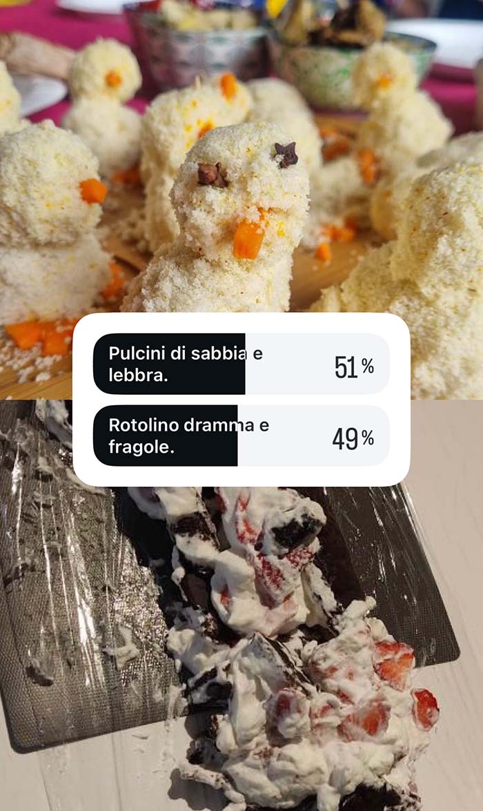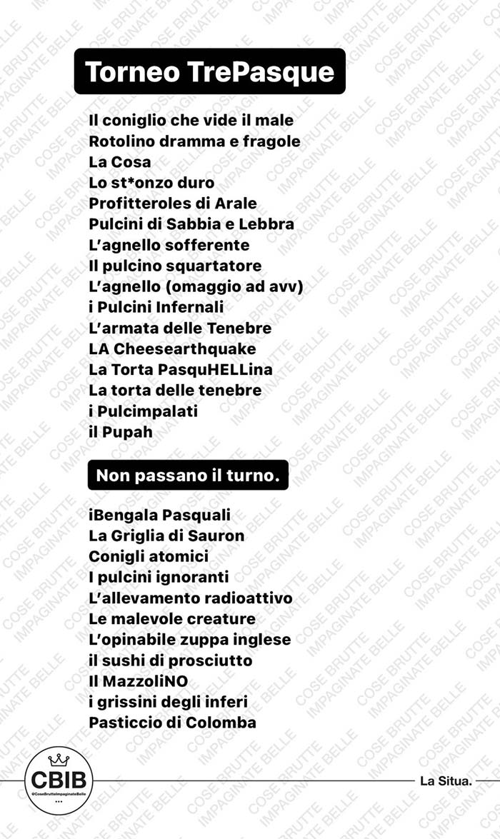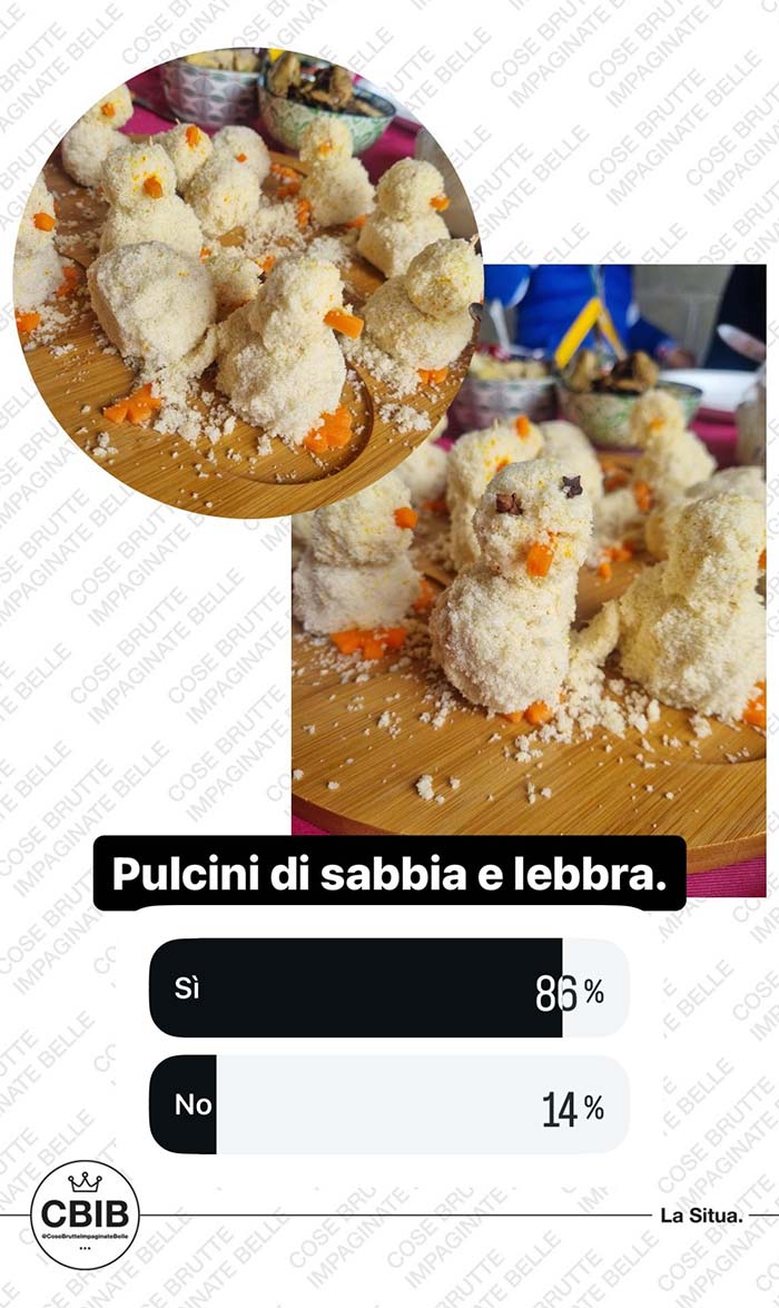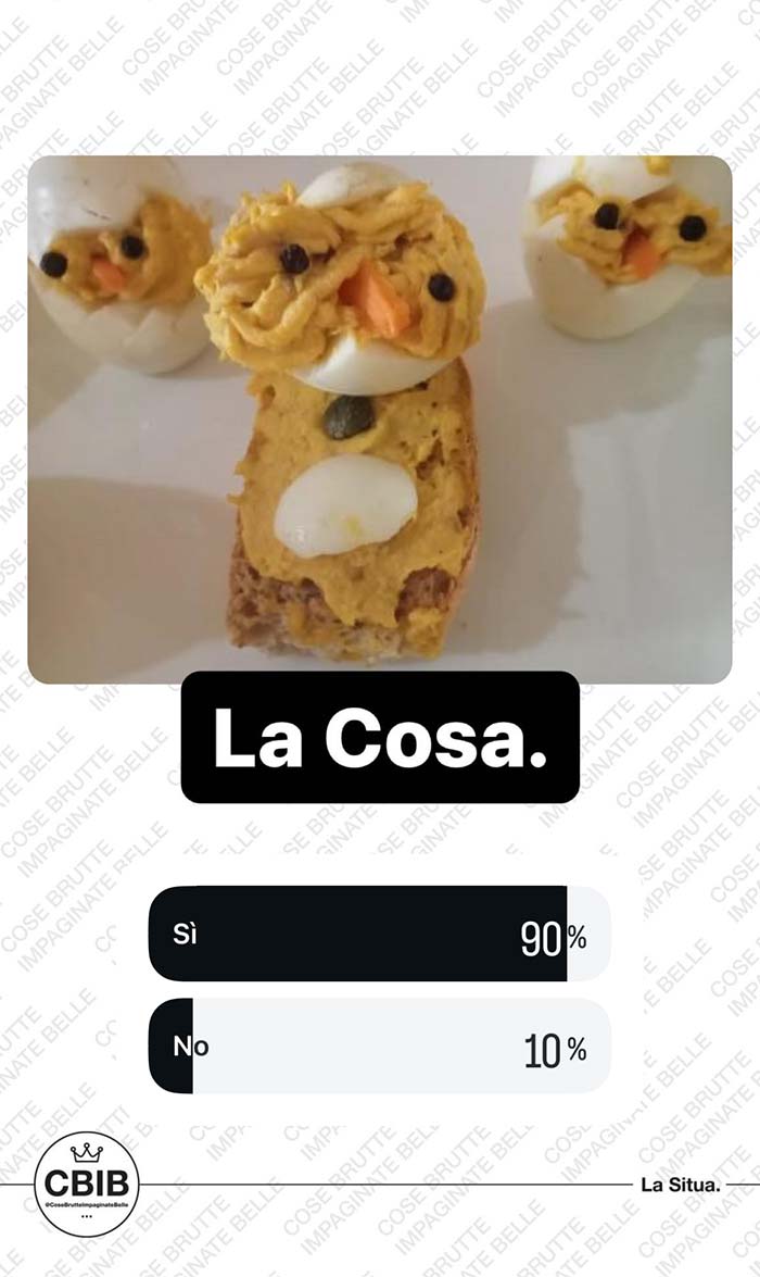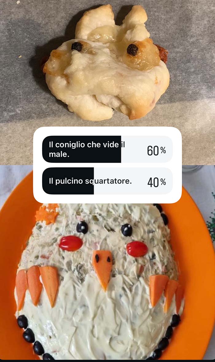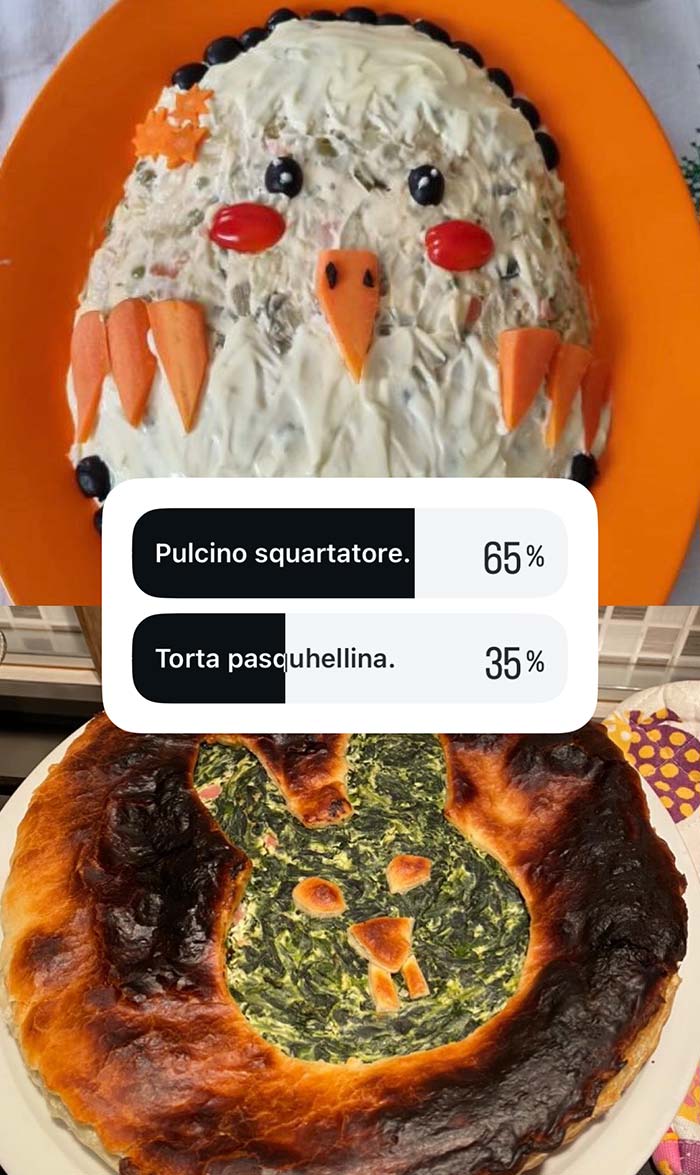 A partire dal primo pomeriggio di Pasquetta, vengono messi ai voti i più brutti piatti cucinati dalla community in occasione di questa festività. Valgono sia le pietanze cucinate per Pasqua che quelle proposte a Pasquetta.