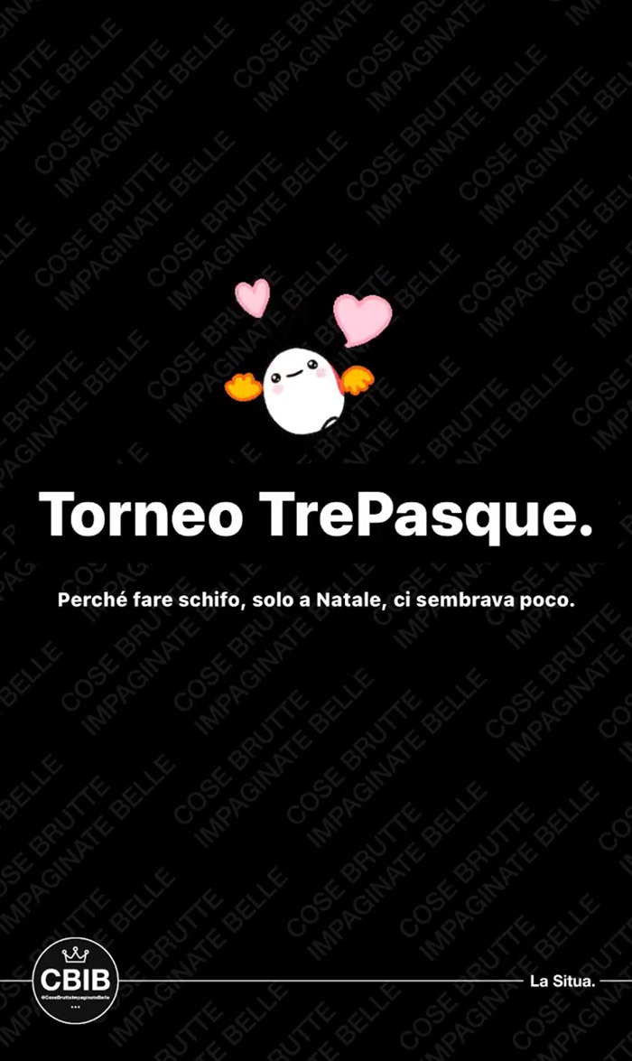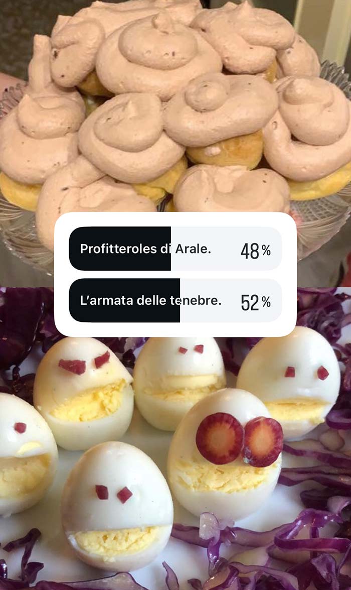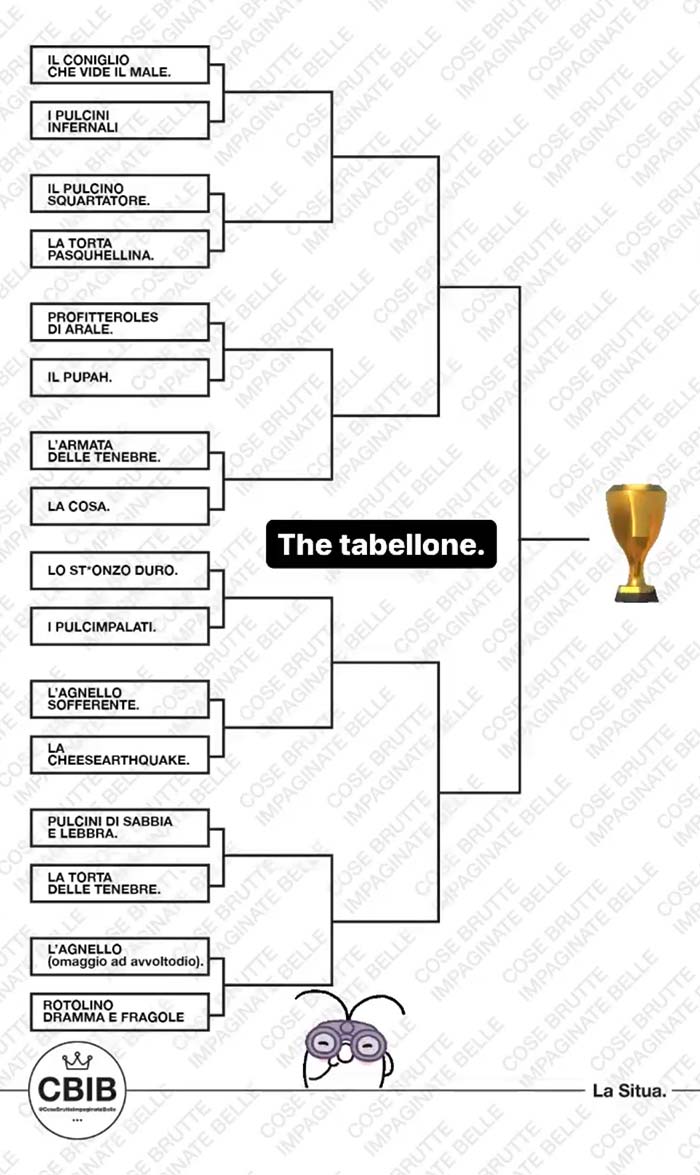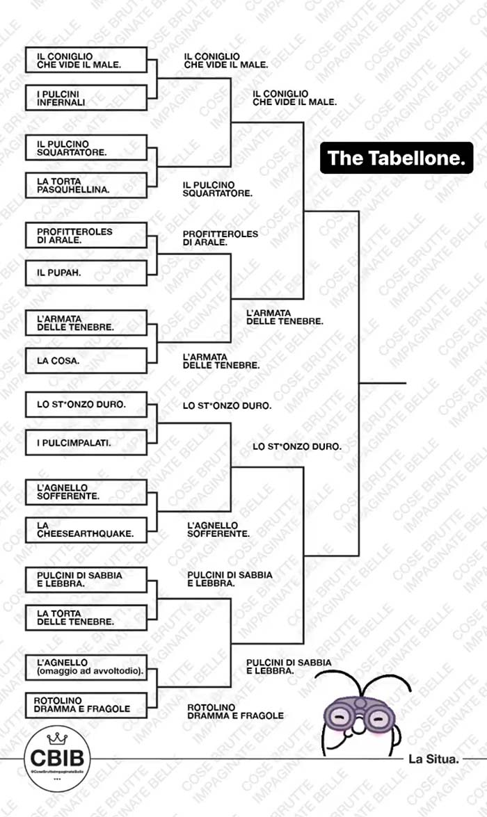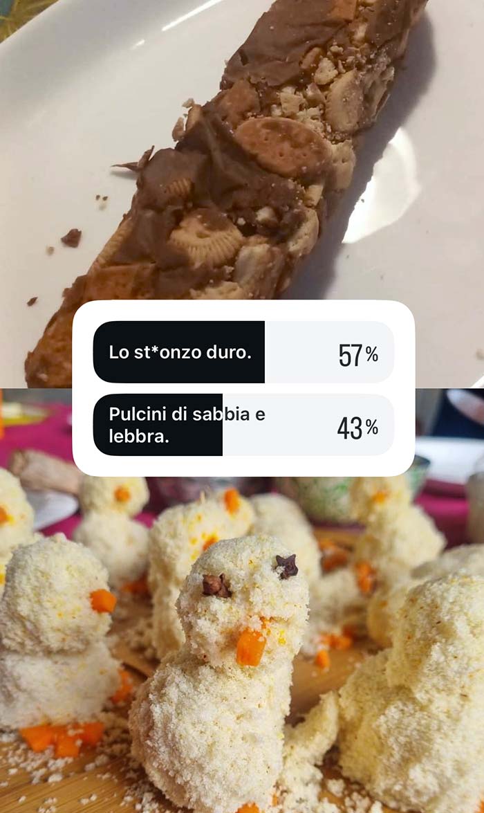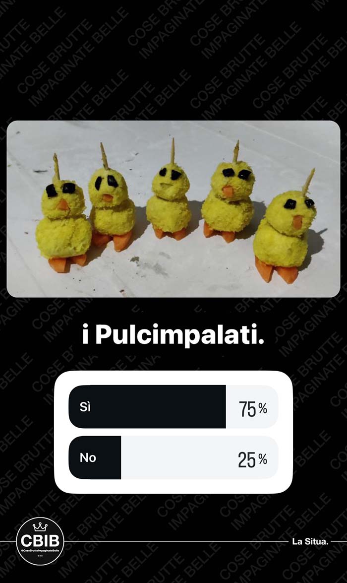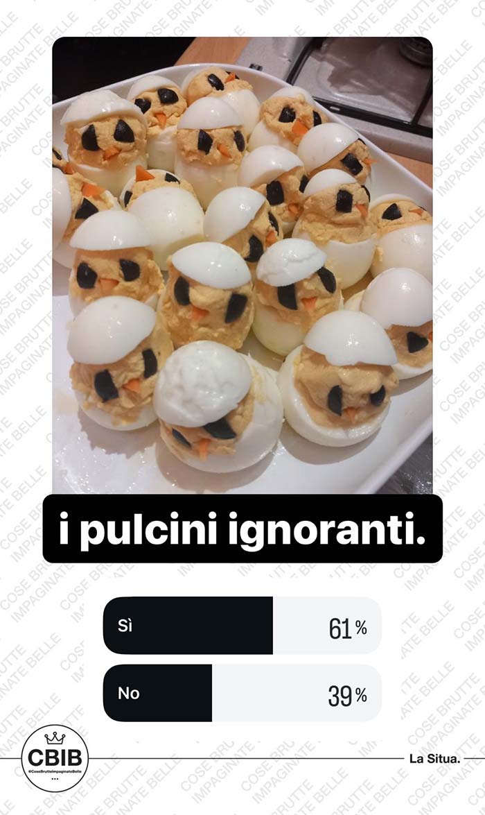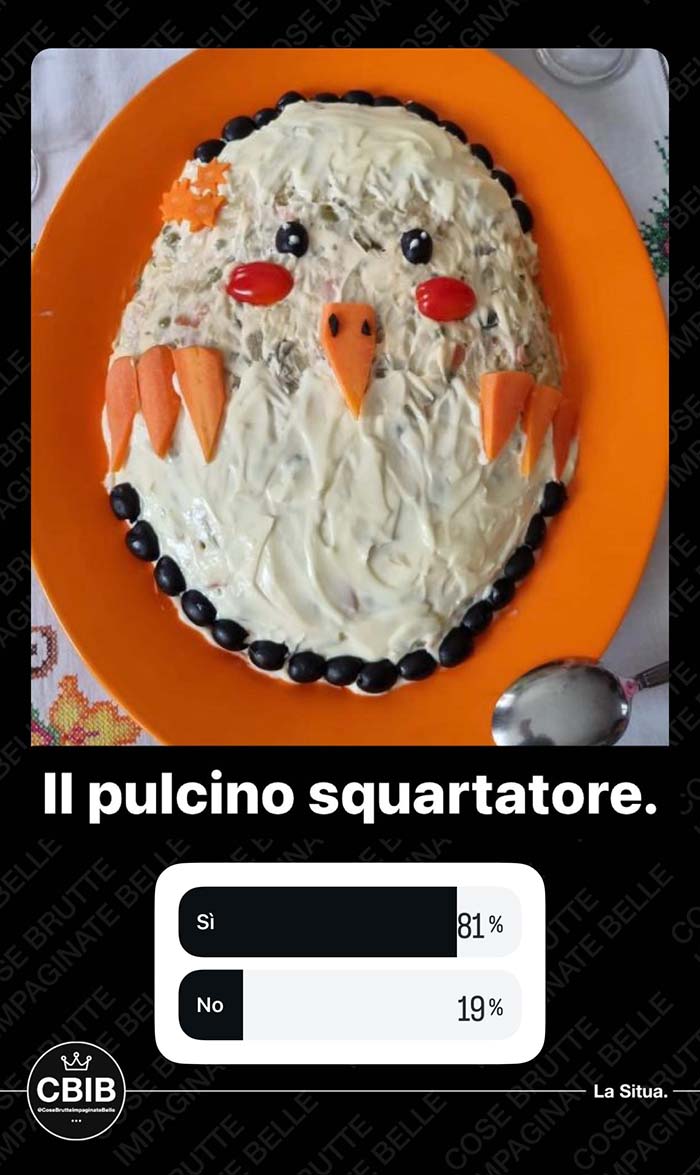 A partire dal primo pomeriggio di Pasquetta, vengono messi ai voti i più brutti piatti cucinati dalla community in occasione di questa festività. Valgono sia le pietanze cucinate per Pasqua che quelle proposte a Pasquetta.