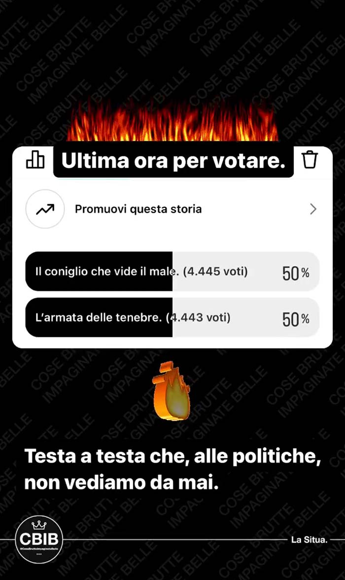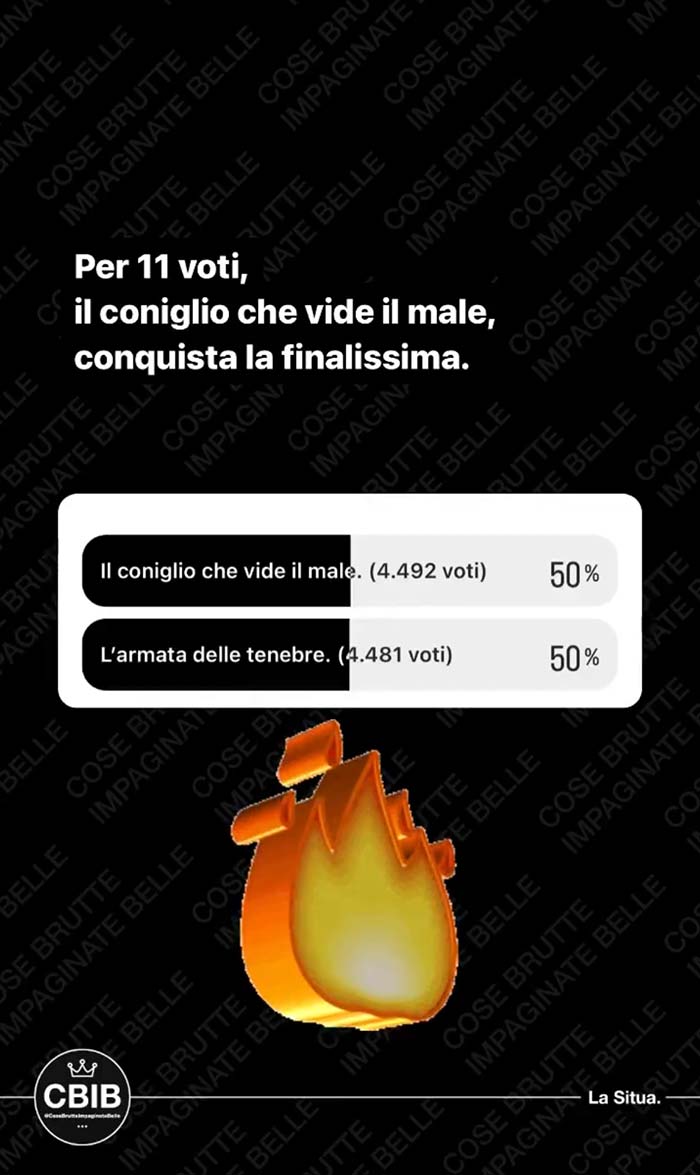 Si vota esclusivamente nelle stories di CBIB, fino ad arrivare al vincitore assoluto.